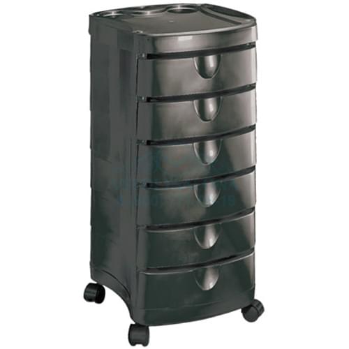 Парикмахерская тележка Т-30 оснащена глубокими и вместительными ящиками для парикмахерских принадлежностей, а также фенодержателем для еще большего удобства работы. Она выполнена в классическом черном цвете, что делает ее универсальной моделью практически для любой современной парикмахерской или барбершопа.