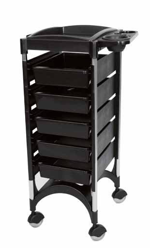 Парикмахерская тележка Т-30 оснащена глубокими и вместительными ящиками для парикмахерских принадлежностей, а также фенодержателем для еще большего удобства работы. Она выполнена в классическом черном цвете, что делает ее универсальной моделью практически для любой современной парикмахерской или барбершопа.