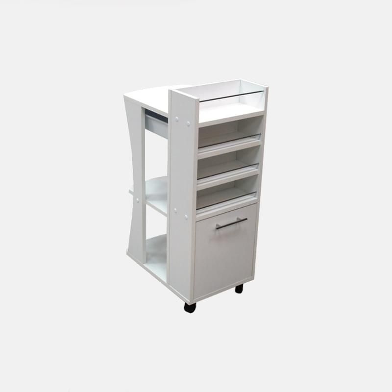 Тележка "Дижон" это тот случай, когда мебельная конструкция не только многофункциональное изделие, а и яркая изюминка салона красоты. Если говорить о функциях, то следует отметить что изделие содержит и закрытые, и открытые отсеки. Наличие выдвижных полочек и ящичков позволяет говорить о эргономичности пространства, и упрощении рабочего процесса для мастера. При этом широкие полки могут быт использованы для хранения не только материалов, но и для рабочих инструментов, которые отнимают много места на столе у мастера. Цветовое решение конструкции остается на усмотрение заказчика.