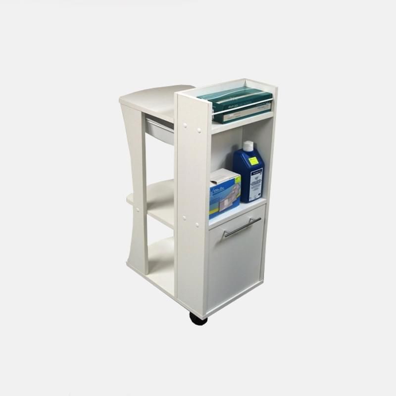 Тележка "Рен" позволяет не только упростить рабочий процесс мастера (тем самым усовершенствовав всю работу салона), но и сэкономить общее пространство. Осуществить это можно благодаря тому, что данная мебельная конструкция содержит несколько открытых и закрытых отсеков. Открытые полочки можно использовать с целью хранения материалов, которые должны быть всегда на виду и под руками у мастера. Закрытые ящички можно эксплуатировать под хранение рабочих инструментов, которые достаточно емкие и занимают много места. Преимуществом тележки будет то, что она снабжена четырьмя передвижными колесиками.