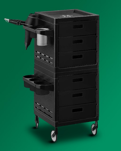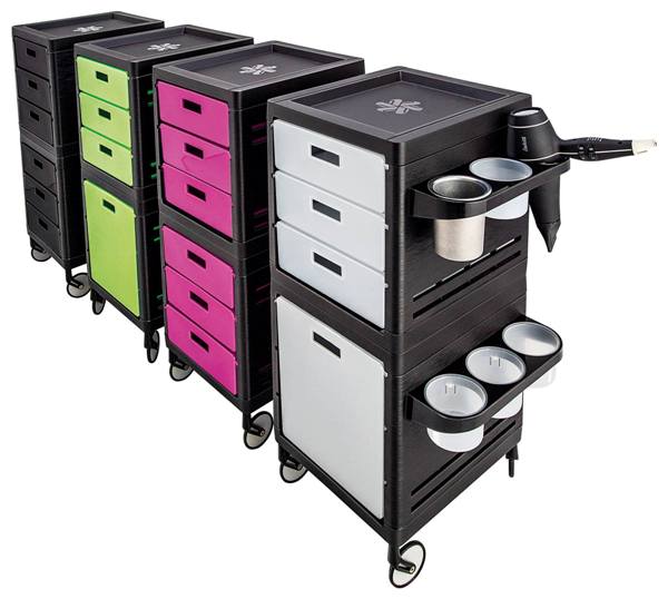 Тележка парикмахерская "MY" - закрытого типа на бесшумных колесиках "NO HAIR". Тележка выполнена из прочного пластика. Тележка оснащена выдвижными ящиками и съемными боковыми полками.
