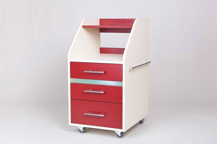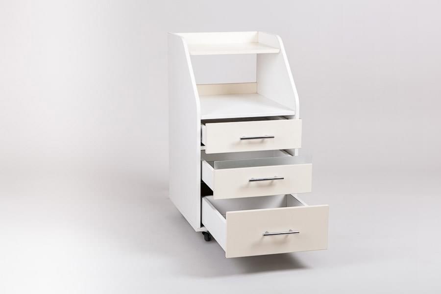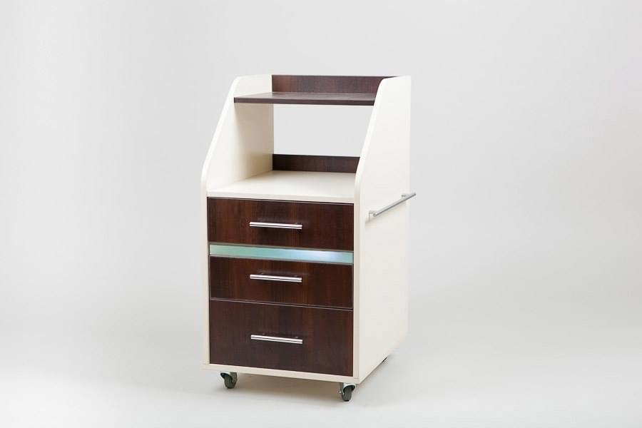 Тележка Атика имеет форму компактной тумбы. Модель является универсальной и многофункциональной, и может использоваться в качестве вспомогательной мебели в косметологическом, парикмахерском, массажном, маникюрном и педикюрном кабинетах. Низ оснащен колесиками, что позволяет мобильно и бесшумно перемещать изделие.