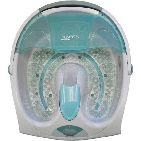 Гидромассажная ванночка для ног. Функции: поддержание температуры воды, вибромассаж, гидромассаж (пузырьками воздуха), точечный массаж, роликовый массаж, сухой массаж насадками (3 насадки - массажная, пемза, щеточка). Цвет синий с белым. Вода заливается и выливается вручную.