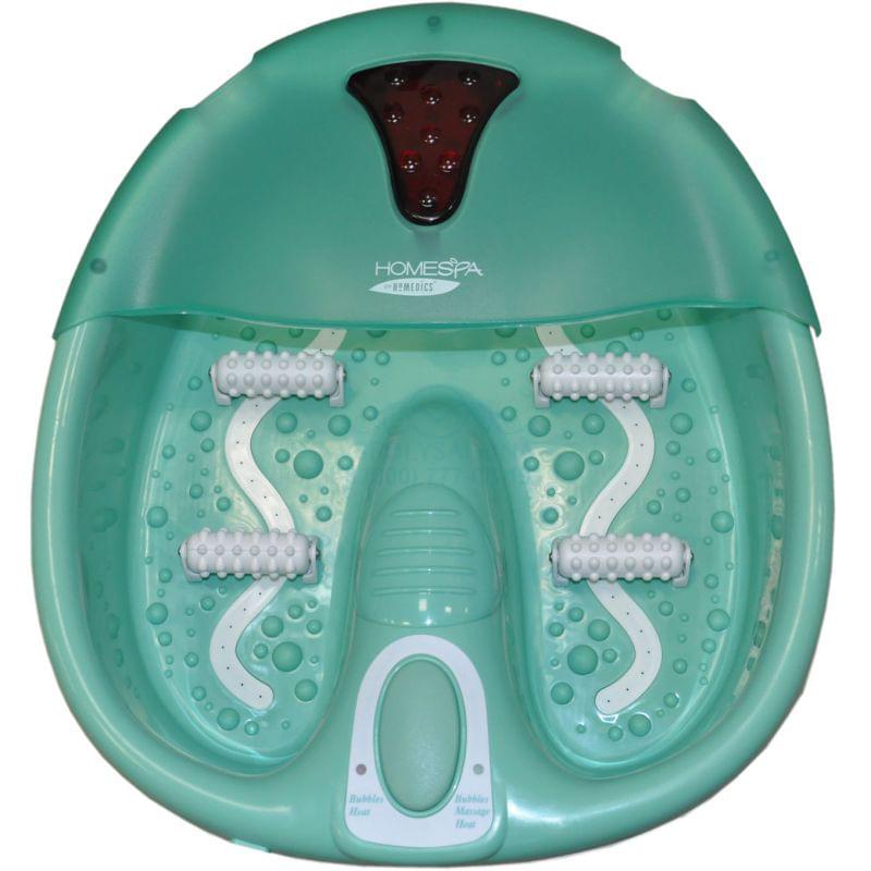 Гидромассажная ванночка для ног. Функции: поддержание температуры воды, вибромассаж, гидромассаж (пузырьками воздуха), точечный массаж, роликовый массаж, сухой массаж насадками (3 насадки - массажная, пемза, щеточка). Цвет синий с белым. Вода заливается и выливается вручную.