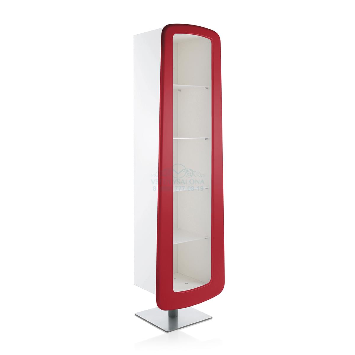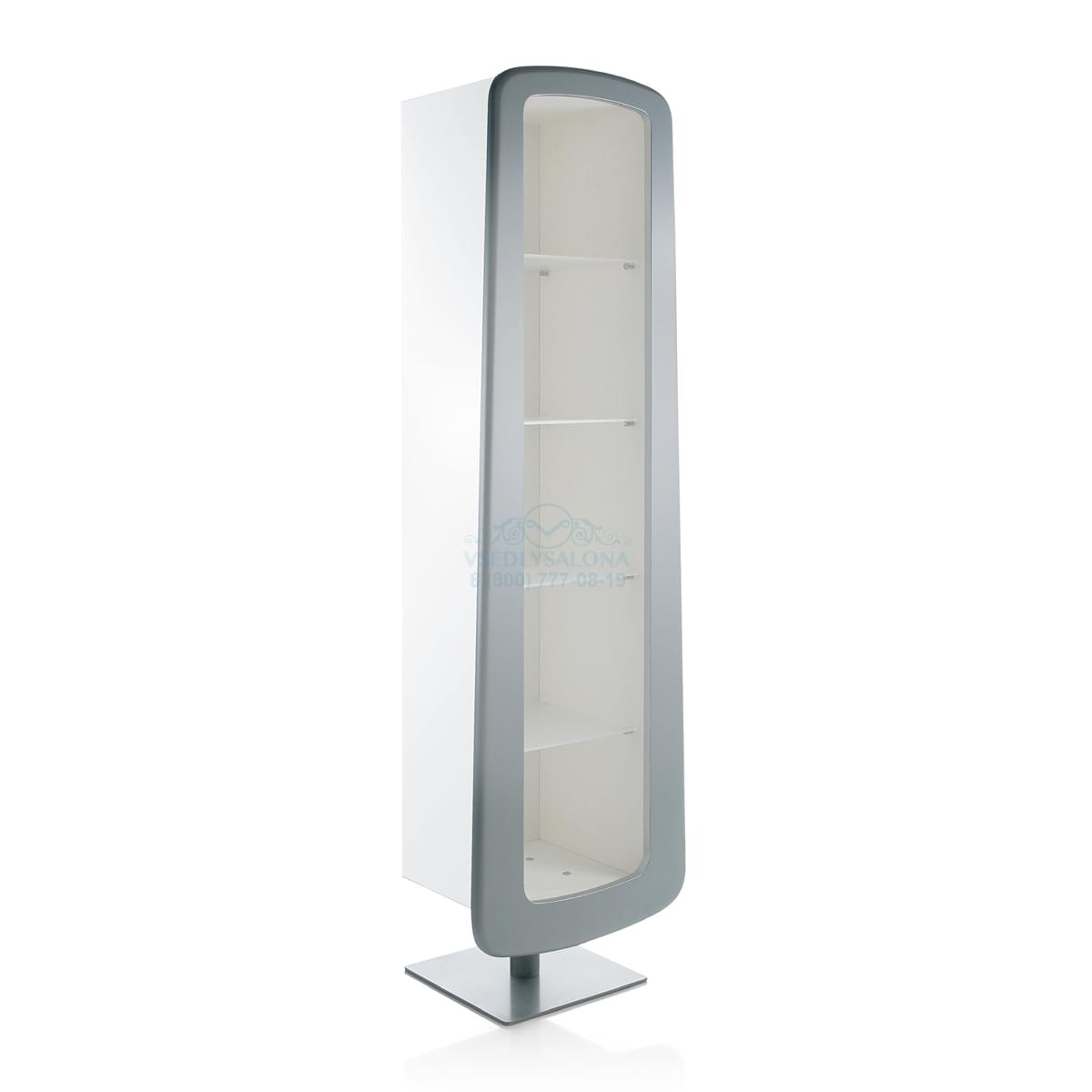 Витрина. Ножка металлическая, полочки из ламината. Имеет пять открытых полок.
