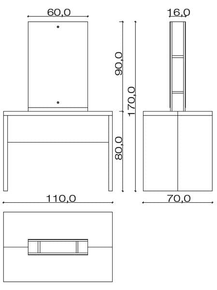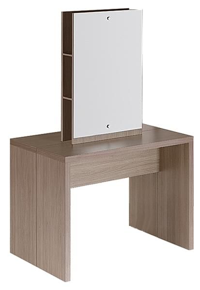 Зеркала крепятся к основанию из ЛДСП при помощи крепежей, зеркальное полотно безрамное. Между зеркалами располагается три удобные открытые полки для хранение различных средств. Под заказ возможно изготовить зеркало любого размера. Материал ЛДСП представлен в широком разнообразии цветов.