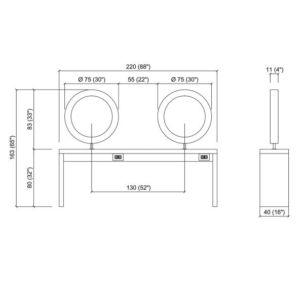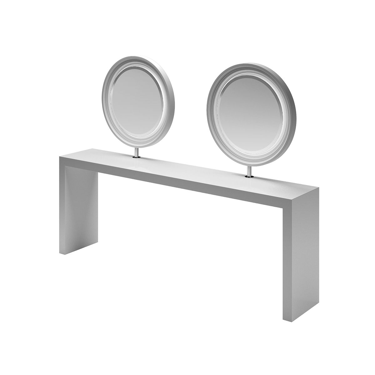 Зеркало парикмахерское "Duobert Wall" - на четыре рабочих места. Рабочий туалет выполнен в ламинате белого цвета. Рабочий туалет оснащен зеркалами округлой формы в декоративной раме.