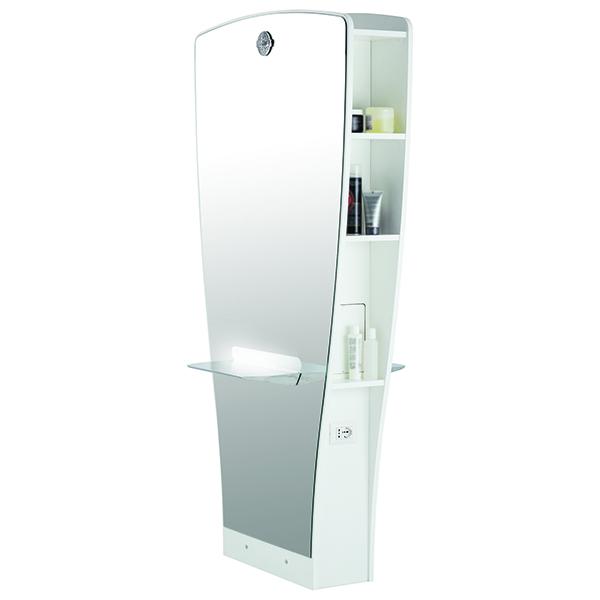 Парикмахерское зеркало "FLUT DB" с артикулом С-м60002524 - Белая облагороженная структура с литой алюминиевой столешницей. Электрические розетки доступны по запросу. Дополнительный светодиодный передний свет.