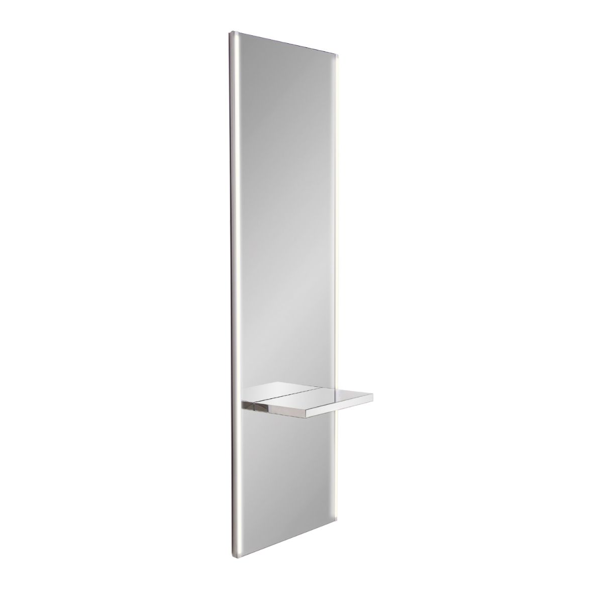 Зеркало парикмахерское "LUCE" - с подсветкой. Зеркало оснащено светодиодной подсветкой LED, столешницей из нержавеющей стали и подставкой под ноги. Крепление к стене.