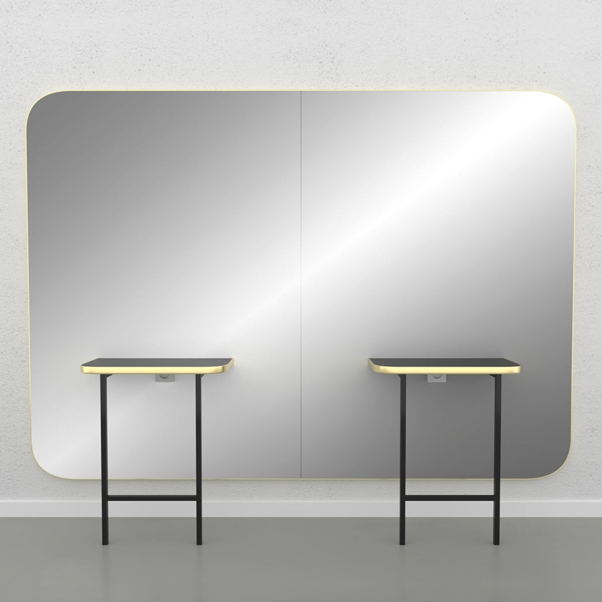 Зеркало парикмахерское "Madison Gold Infinite 2P" - в блестящем черном или золотом цвете. Черная металлическая конструкция с черной верхней частью.