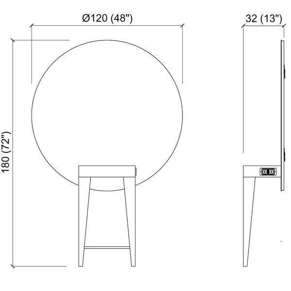 Зеркало парикмахерское "Madison Round" - на одно рабочее место. Рабочий туалет оснащен зеркалом округлой формы, консолью, выполненной в дереве, с подставкой под ноги. Крепление к стене.