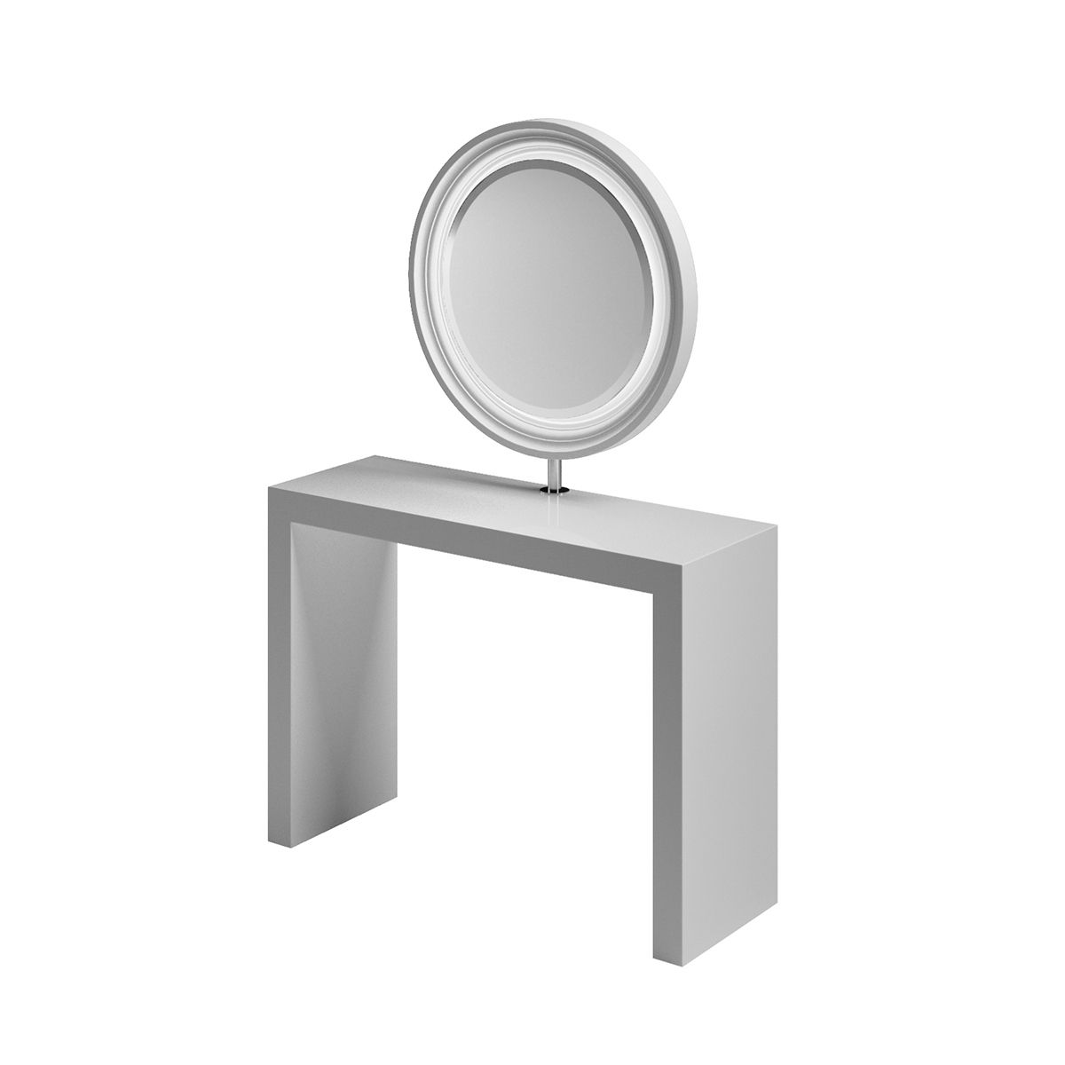 Зеркало парикмахерское "Monobert Wall" - на два рабочих места. Рабочий туалет выполнен в ламинате белого цвета. Рабочий туалет оснащен зеркалом округлой формы в декоративной раме.
