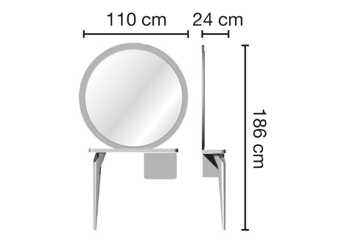 Зеркало парикмахерское "TONDO" с артикулом С-м60002740 - Каркас из меламинового белого или черного цвета, с выдвижным ящиком и ножкой из литого алюминия