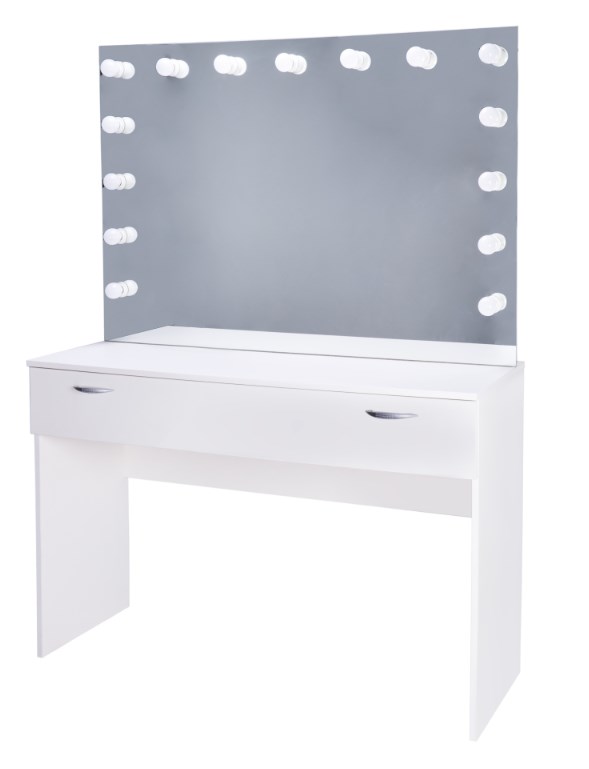 Небольшие колесики позволяют легко перемещать стол визажиста-парикмахера по помещению.