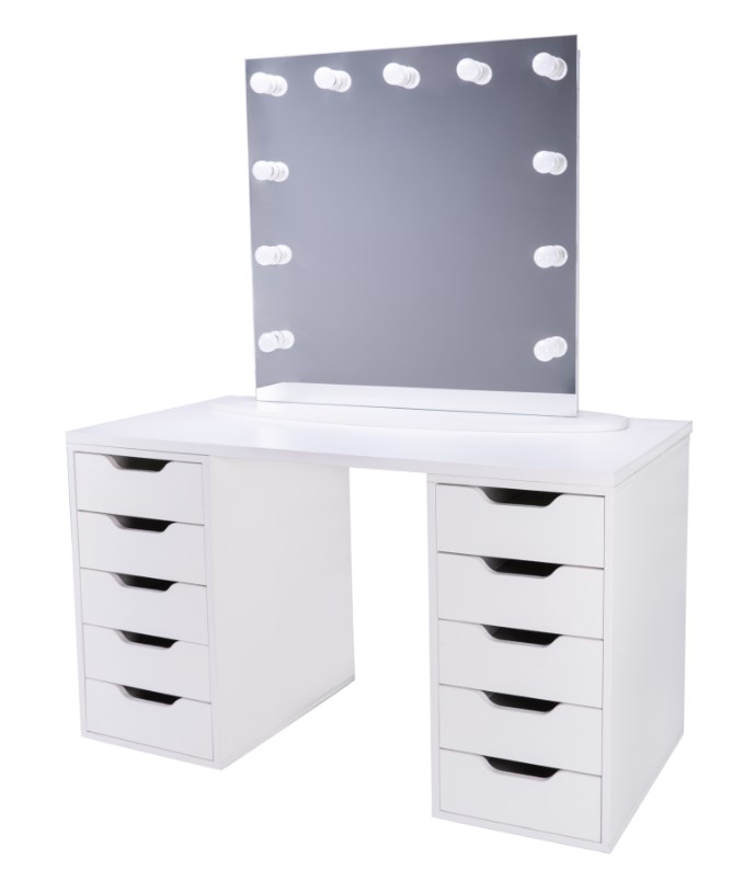 Складной маникюрный стол с тумбой "Ever" в сложенном виде занимает вдвое меньше пространства. Это экономит площадь и позволяет с комфортом работать даже в маленьких кабинетах. Есть вместительная тумба и полка под столешницей.