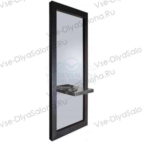 Зеркало парикмахерское, одностороннее, крепление к стене. Выполнено из ламинированного ДСП, Комплектуется хромированной столешницей с небольшим углублением в виде лепестка. В изготовлении используются комплектующие компании Exsel. Размер (ДхШхВ): 96х50х197